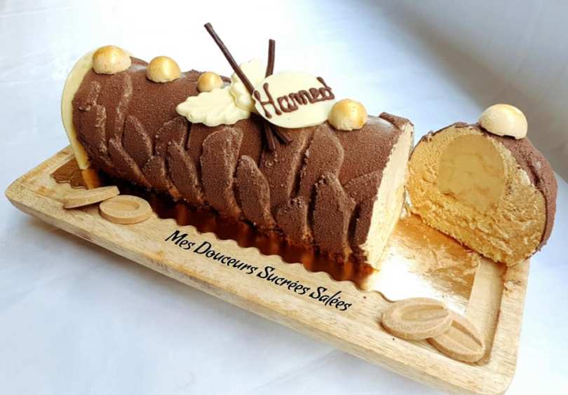 De nouvelles idées pour vos bûches de fin d’année, celle ci se compose d’une ganache montée vanillée, d’un insert aux pommes caramélisées et d’un croustillant au chocolat blanc , parfaite pour une fin de repas ![]()